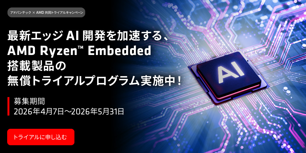 最新エッジAI開発を加速する、AMD Ryzen™ Embedded 搭載製品の無償トライアルプログラム実施中