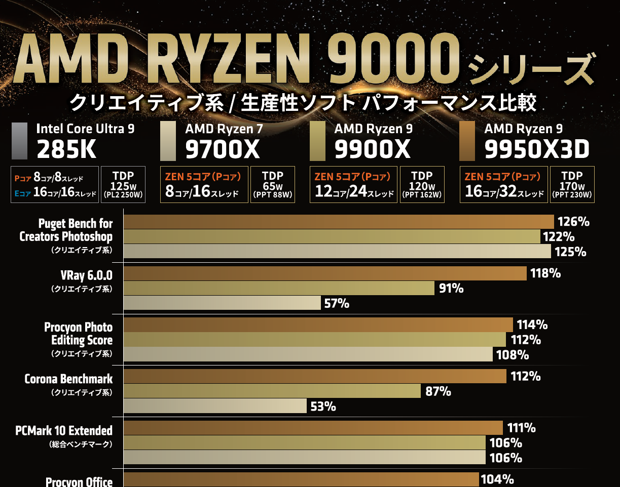 もちろんCPUのTDPよりクーラーの冷却力が下回ってしまう場合や、クーラーが物理的にマザーボードのヒートシンク等と干渉してしまう場合も流用はできない。この点はCPUクーラーメーカーの情報を収集しておきたい。TDP 170Wモデルなら280mmのAIO水冷でも冷えるとAMDは謳っているので、定格で使うならそこが目標になるだろう。