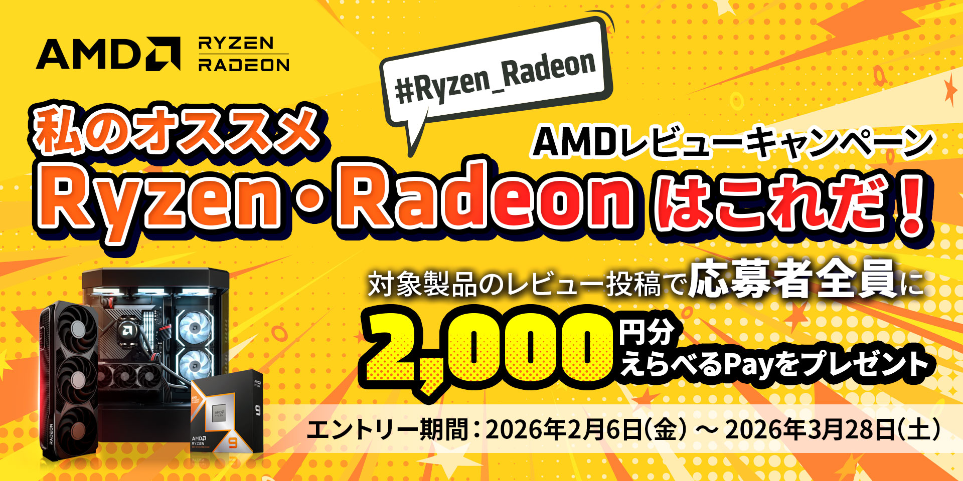 #Ryzen_Radeonおよび#PRを含む 110文字以上 のレビュー投稿が必須条件です。