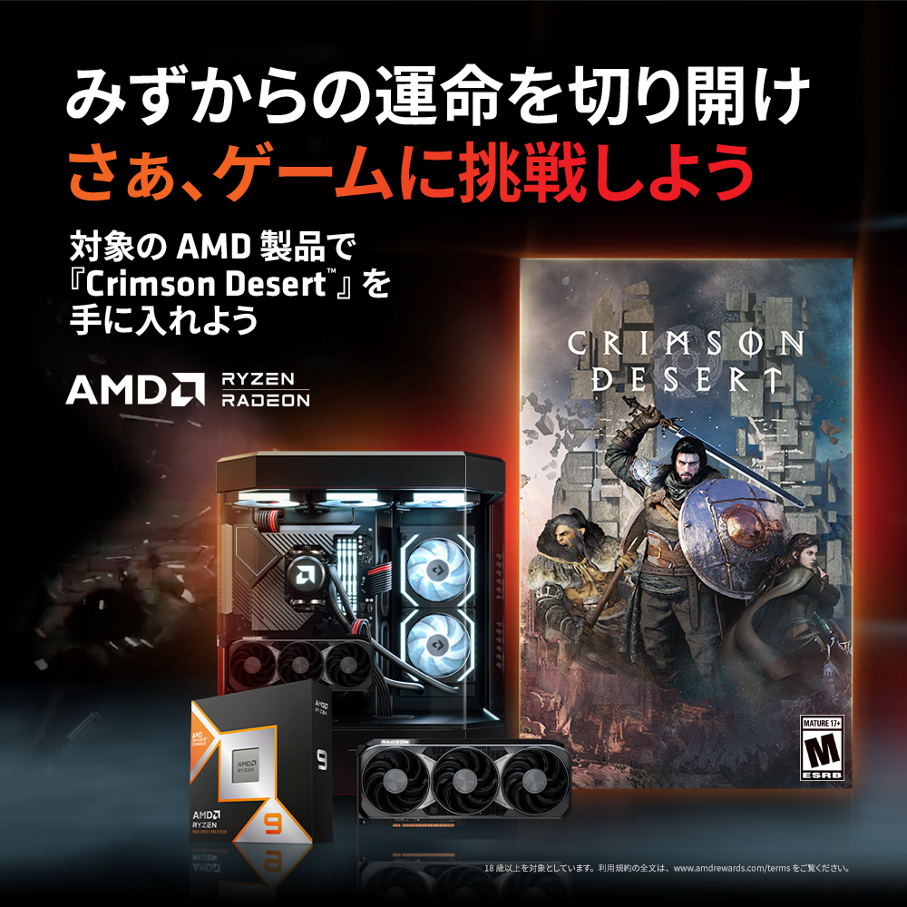 - クーポンコードは、2026年5月23日(土)までAMD Rewardsサイトに申請してください。その後は無効になります。